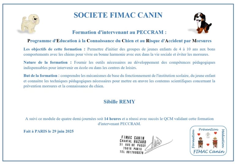 Je vous attends donc avec votre compagnon, et/ou vos enfants, dans la joie, la bonne humeur et avec un peu de folie, et suis à votre disposition, via le formulaire de contact, pour toutes vos questions !